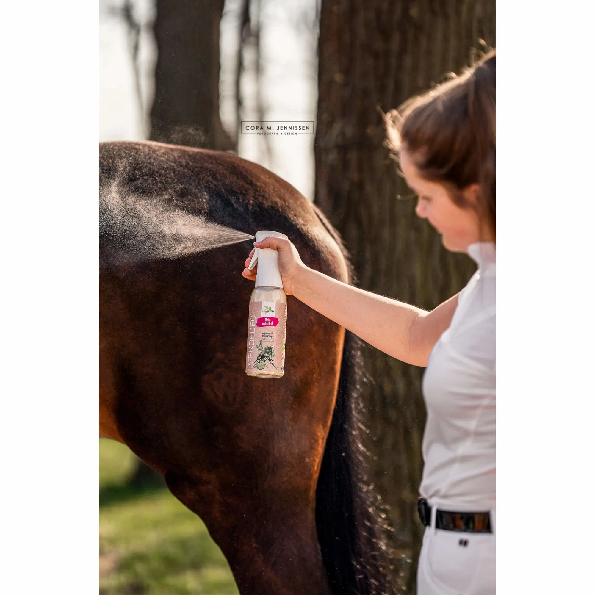Ce déodorant naturel protège les chevaux contre les moustiques et les mouches en masquant leur odeur corporelle grâce aux huiles douces et soignantes de noyer et d’orange.
