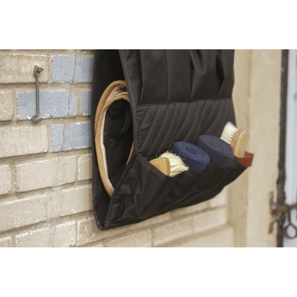 Bandes de polo ou de repos, sous-bandes, brosses, produits de soin, tapis et chemises de box trouveront facilement leur place dans ce sac aux nombreux emplacements de rangement.