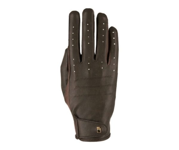 Les perforations sur les doigts optimisent également la respirabilité. La paume en ROECK-AIR est au moins aussi souple et va même plus loin en termes de respirabilité. De plus, ROECK-AIR est merveilleusement tactile – presque comme une seconde peau – et donne au gant un toucher très fin sur les rênes. La coupe exclusive comfort-cut assure une silhouette élancée et un haut niveau de confort. La coupe fine et ajustée, la matière exquise et le design noble des gants Malaga sont complétés par une sangle velcro au poignet, perfectionnant l’ajustement et sur laquelle la petite main stylisée Roeckl.